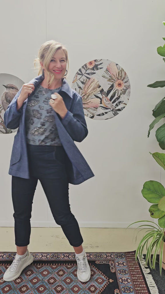 Pleat detailing on the back, creates the perfect fit with a touch of nostalgia. Our signature generous pockets and single natural shell button and superb detailing is what makes this coat a cut above. The sleeve hem can be worn up to create cuff and show off feature binding, with the collar worn partially up to show contrast exclusive printed organic linen.